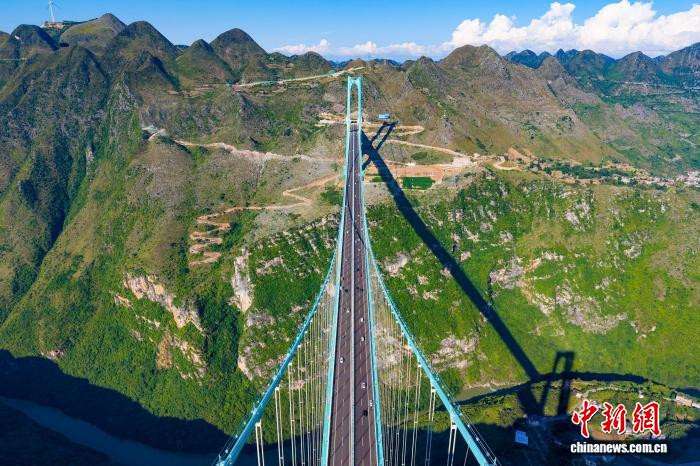 9月28日,世界第一高桥——贵州六枝至安龙高速公路花江峡谷大桥正式通车运营。(无人机照片)中新社发龙建睿摄